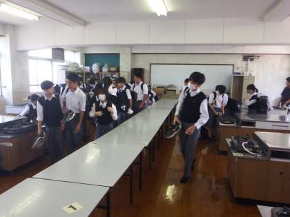 本日、6限に大雨による水害の発生を想定して、避難訓練(水害)を行いました。放送により、1階のクラスの生徒たちは、落ち着いて速やかに2階、3階の特別教室に移動することができました。その後、先生方の講評と水害についての話を聞きました。生徒たちは、真剣に聞いていました。実際に災害が起こった時も、今回のように速やかに行動できるようにしてください。