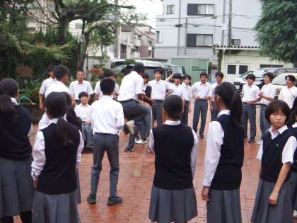 雨も上がったので、6限目に中庭で、体育大会の学年種目の練習をしています。中庭での練習でしたが、盛り上がっていました。本番が楽しみです。