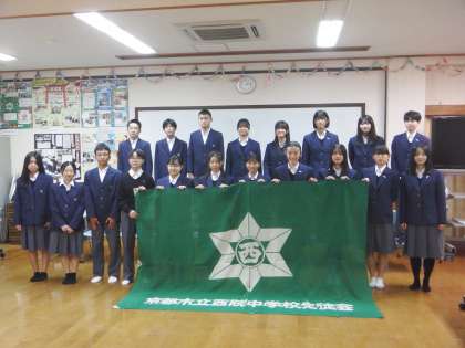 本日、お昼休みに新旧の生徒会本部役員の引継式がありました。先日、選挙で当選した生徒会本部役員の生徒の皆さんは、少し緊張した面持ちで、旧の生徒会本部役員の話をしっかりと聞いていました。認証式後、新生徒会本部役員の取組がスタートします。よりよい西院中学校になるように、みんなんで力を合わせて頑張りましょう。