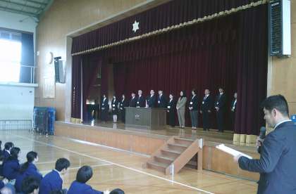 始業式では、学校長の話、そして2、3年生の学級担任、学年担当教職員、部活動顧問、委員会担当教職員の紹介がありました。