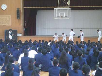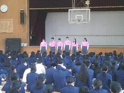 本日、5限に1年生を迎えて部活動紹介が行われました。中学校生活の楽しみの1つでもある部活動だと思いますが、2・3年生が限られた時間の中、それぞれ趣向を凝らしてアピールしていました。本日から、部活動の体験入部も始まります。まずは気になる部活動を体験・見学して、活動してみたい部活動を見つけて下さいね。