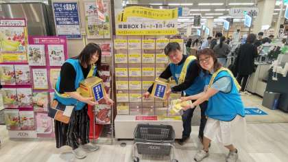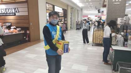 5月11日(日)、五条イオンにてPTA本部役員が、黄色いレシートキャンペーンのPR活動を行いました。当日は、母の日ということもあり、ご家族連れのお客様を中心に、お買い物に来られた多くの方にご協力をいただきました。保護者の方から「ご苦労様!」とお声をかけていただく場面も増え、大変励みになっています。黄色いレシートの1%が西院中学校PTAの活動費として還元されますので、今後ともご協力をよろしくお願いいたします。