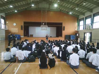 いよいよ明日から修学旅行が始まります。前日となる本日の6限に前日集会が行われました。修学旅行中のマナーやルールを再度確認し、隊形の練習などが行われ、最後は『島んちゅの宝』を合唱しました。「気分はもう沖縄」でしたが、今日は早めに寝て、体調を整えて下さい。