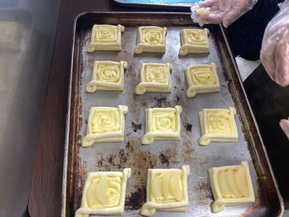 フルーツを切って、フルーツデニッシュのトッピングを任されていました。
