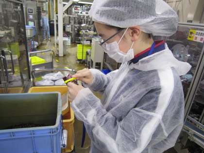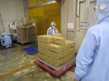 コーヒーの香りが立ち込める中で、箱詰め作業しています。