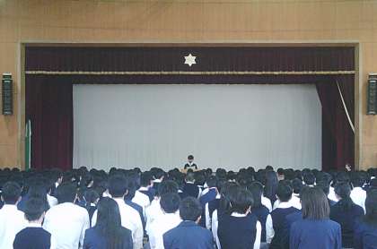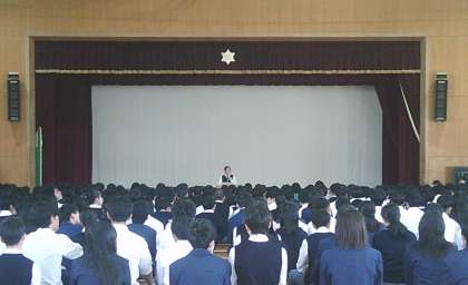 昨日、人権作文全校発表会が体育館で開催されました。
