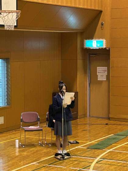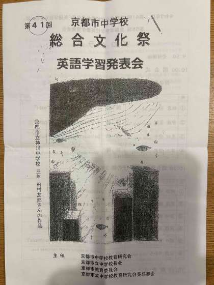 11月1日(土)京都市総合教育センターで、中学校総合文化祭 (英語学習発表会)が行われました。本校より、3年生が3名発表と総合司会をしてくれました。堂々とした英語のスピーチと司会でした。また、1年生の英語での自己紹介も展示されていました。みなさん、しっかりと英語で自分のことを表現していました。