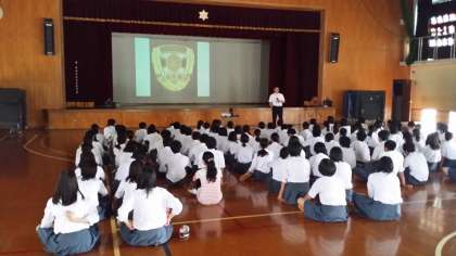 2年生が,教育委員会生徒指導課石塚課長様から非行防止教室として,ご講演いただきました。石塚課長は,現在は京都府警から人事交流により教育委員会に所属されています。現役の警察官の方から,決して生徒たちが軽はずみな行動で法を犯すことの無いようにと,優しくまたあつく語りかけていただきました。生徒たちも真剣に,話を聞いていました。わかっているつもりでも,安易に行動したことが重大なことになることがあるということが,再確認できました。ありがとうございました。