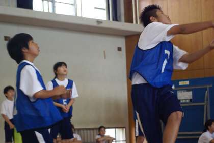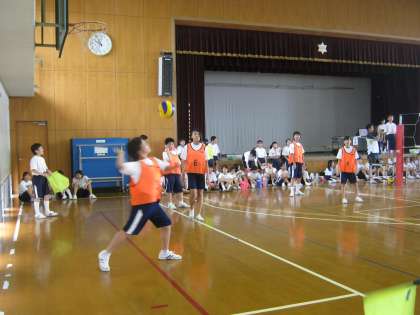 明るい笑顔があふれる体育館で暑さにも負けずがんばりました。