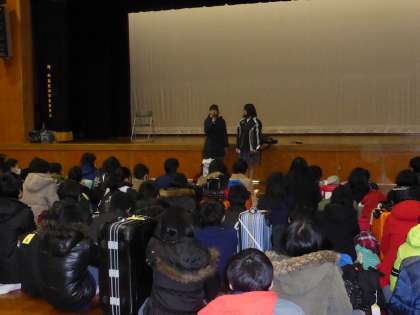 今日から,2年生が2泊3日で長崎へ修学旅行に旅立ちます。朝,6時15分に集合し,無事に結団式が行われました。また,予定どおりバスに乗って京都駅へ向かっています。