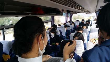 車内は,バスレクのビンゴゲームなどで,みんな真剣に,そして盛り上がっているそうです。