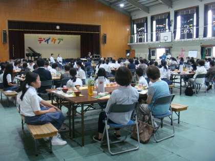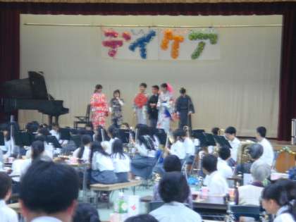 吹奏楽部の演奏。吹奏楽部の保護者の方も多く来られ,楽しい雰囲気の中,曲目が進みます。