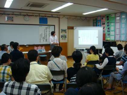 まず,京都における子どもの現状を,統計を見ながら説明して頂きました。進む少年非行の状況や小・中学校における不登校の状況などを聞いて,いろいろ考えさせられました。