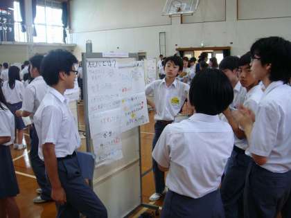 発表者も聴衆も,熱い体育館の中で頑張っていました。