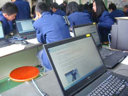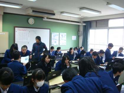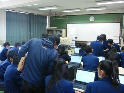 クラス毎に時間差でコンピュータ室に入り,パソコンを使っていろいろ調べていきます。
