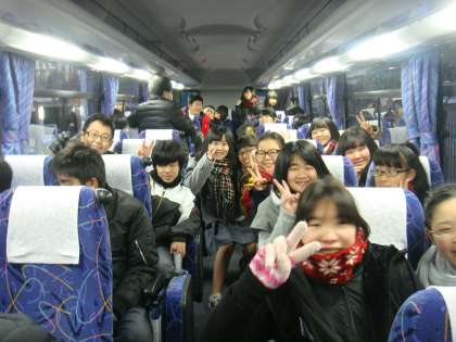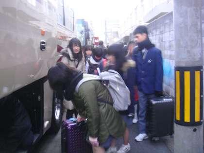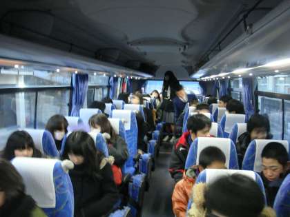 荷物をバスのトランクに入れ,座席に着きました。