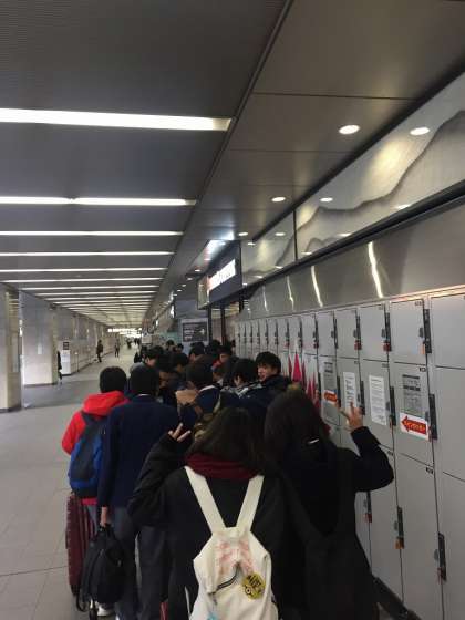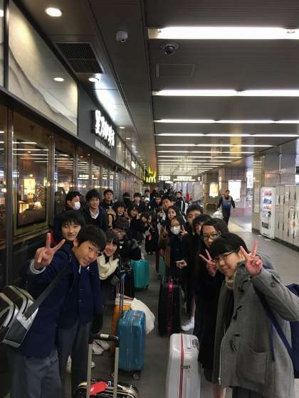 バス乗車隊形で整列後,新幹線乗車隊形(2列)に並び替えます。