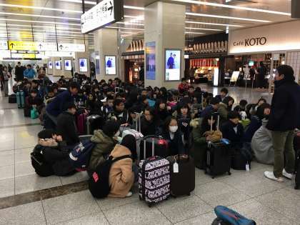 京都駅(八条口)2階新幹線コンコースにて乗車準備中。