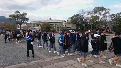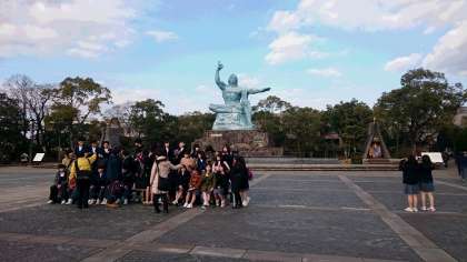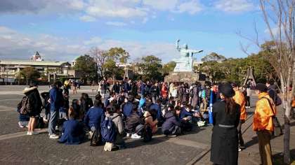 クラス毎に写真を撮った後、平和碑巡りに行きます。