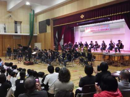 西院青少年育成連絡協議会主催の「第41回 ふれあいコンサート」が、西院小学校アリーナで、行われました。西院地域の幼児さんから高齢者の方々まで、多くの人が集まった中、歌や楽器の演奏などが次々と披露されました。西院中学校の生徒の皆さんも「西院六斎念仏」の四ツ太鼓、2年生全員による合唱、そして吹奏楽部の演奏と続きました。また、司会は放送部の皆さんが担当してくれました。多くの方々に参観いただき、「さんぽ」の合唱でしめくくりました。