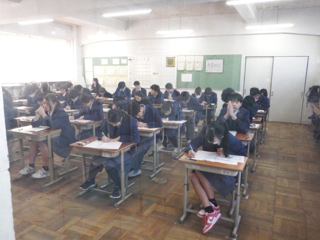 1,2年生にとって、1年の締めくくりとなる定期テストがスタートしました。みんな一生懸命取り組んでいました。