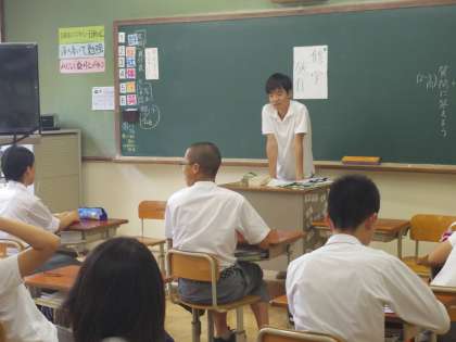7/5(水)5限 3年生の国語はスピーチ発表の2回目。社会とのかかわりについて考え、スピーチします。3年生らしい視点で自分や社会、まわりとの関わりについて発表しました。質疑応答の時間も、しっかり意見が出ました。