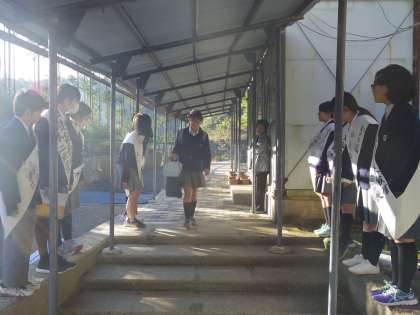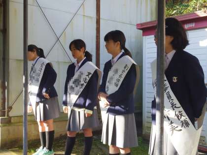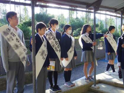 11/2(木)来週月曜日は生徒会役員選挙。立候補者は早朝から通用門前で登校するみんなをあいさつで迎えています。