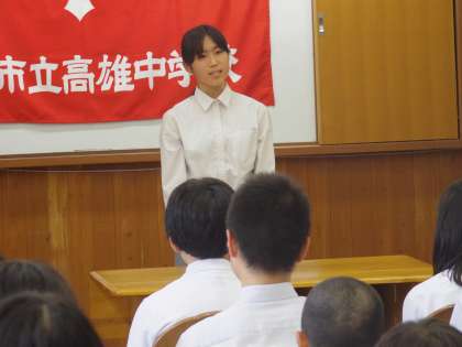 第3号議案として専門委員会からのスローガンが提案されました。代表委員、文化委員、体育委員からの提案の様子です。