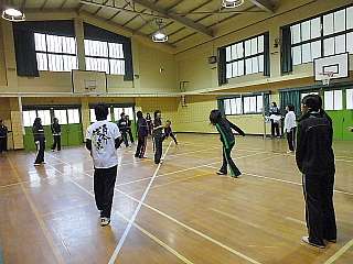 3月8日(火)の3・4時限目に、春季球技大会(バレーボール)を行いました。グランド南側の擁壁工事の関係で、体育館を併用して2コートで試合を行いました。少し雨が心配されましたが、予定通り競技を進めることが出来ました。試合は、3学年縦割り集団(フレンドリー班)ごとに2チーム作り、色別で総当たりしてその勝敗数で順位を決める方式を取りました。閉会式での先生からの総括にもありましたが、卒業を控えた3年生が中心となり、みんなに声をかけてゲームを盛り上げ、ナイスプレーやラリーが続く好試合が展開されました。試合結果は7勝1敗で青組が第1位となりました。
