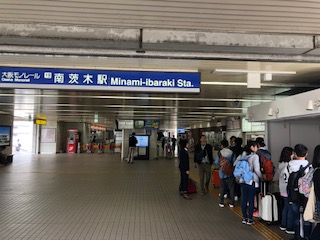今からモノレールに乗り換えです。自動改札機で切符の取り忘れをする人がちらほら。