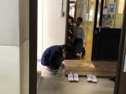 来客用のスリッパを一つずつていねいに拭いている姿がありました。