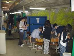 いよいよ「フレンドリー班」が活動を開始しました!今日は予定では「新入生歓迎遠足」でしたが・・・あいにくの天気なので,急遽校庭での「新入生歓迎昼食会」(野外炊飯)に変更しました!校舎裏の連絡通路に簡易コンロ(炭火)を設置し,全学年縦割りの6班に別れ,焼きたてのお肉に舌鼓を打ちながら歓声を上げる姿がとても新鮮でした!