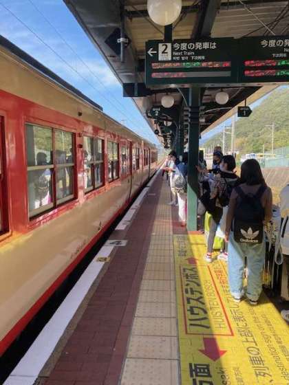 シーサイドライナーに乗って早岐駅に向かいます!およそ5分です!