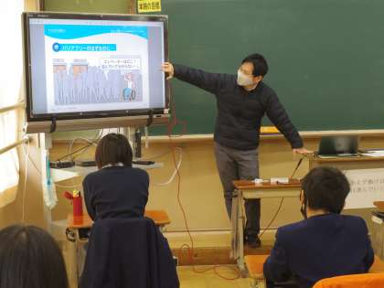 12/1(火)今月は人権月間です。高雄中学校でも,本日4〜6限を利用して人権学習を実施しました。1年生は障害のある人の人権がテーマ。パラリンピックの選手の目線で見た日常のさまざまなバリアを,いかに解決していくか,またバリアフリーとはどういうものなのかということを考えました。