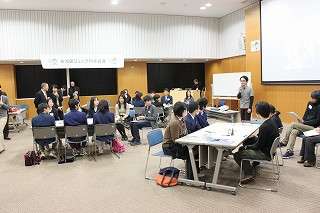 2月17日(日)右京区役所において「第2回 右京区ジュニア円卓会議」が行われました。学年末テスト前の学校もあり,右京区内のすべての中学校の参加とはなりませんでしたが,17名の中学生が集まり,「学校のこと」「地域の特徴」等について紹介や意見を出し合い交流しました。