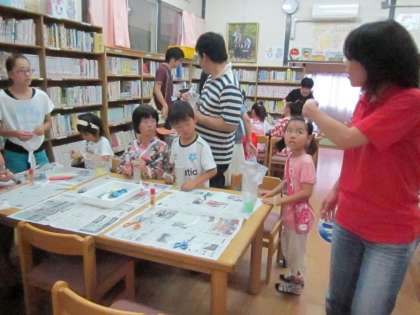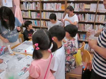 夏まつりでは「万華鏡づくり」のコーナーを中学生が担当しました。