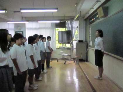8月26日からインターンシップ実習に来られていた先生が本日最終日です。朝に全校集会であいさつをしていただきました。各授業や部活動でお世話になりました。2週間ありがとうございました。本校の卒業生でもあり、また、部活動を中心に学生ボランティアとして今後も時々学校へ来ていただくこともあると思います。