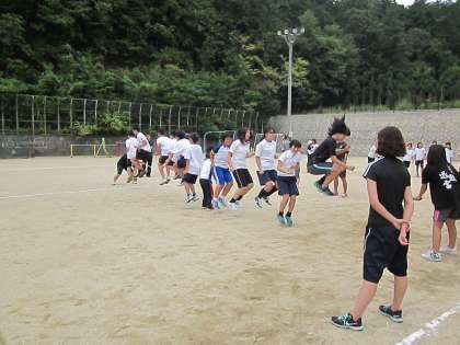 学校祭体育の部に向けての2回目の合同練習が行われました。行進練習の後、大縄跳びの練習を行いました。