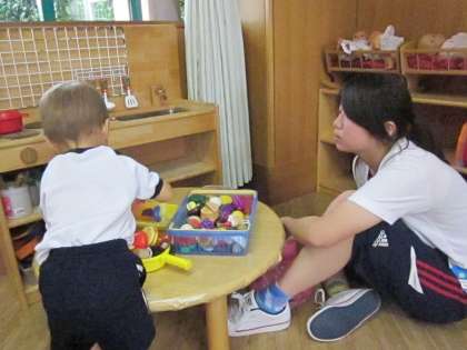 校外で実際の仕事に触れる貴重な機会となります。幼稚園や保育園に行っている生徒は緊張からか、表情は少しかたかったですが、園児からは大人気となっていました。