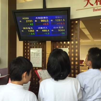 ファイナンスパーク学習で、株価の確認(疑似体験)をしているところです。