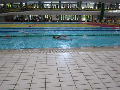 26日、27日にアクアリーナで中体連の水泳の府大会がありました。本校からも1名参加しました。200m、400m自由形に出場し、200mでは見事決勝に進みました。