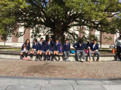 本日は京都市内フィールドワークです。フレンドリー班を2つに割り、合計6班が市内の大学を見学したり、キャンパスツアーに参加したり学食で昼食をとったりします。全班が京都大学をチェックポイントとして見学をします。無事1番目の班が京都大学に到着しました。