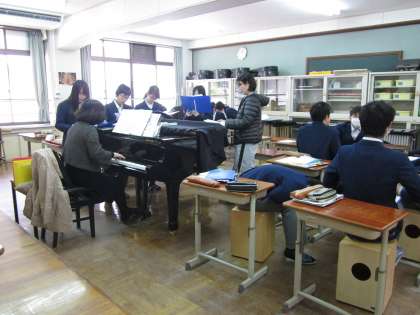 1−1は英語の授業,2−1は数学の授業,3−1は音楽の授業を行っています。