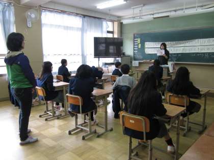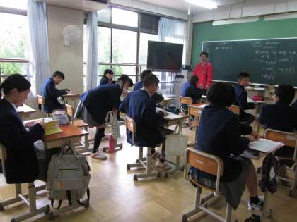 今日の4時間目の授業の様子です。1年1組は英語,2年1組は数学の授業を行っています。