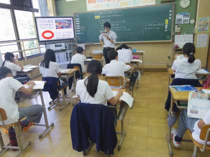 5限1年生の授業は社会。単元は世界の地理。気候や作物の分布の