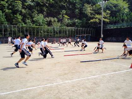 9月21日(火)、第4時限目に3回目の「合同体育」を行いました。1時限目くらいから雨が降り出して、また練習場所を体育館に変更しなければならないかと心配しましたが、何とか天気も持ち直しグランド状態も次第に回復してきました。
