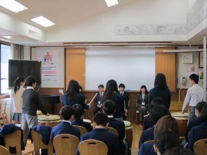 続いて,生徒会より歓迎のことば,和太鼓部の演奏がありました。