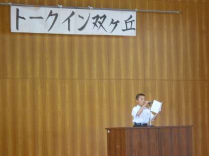 テスト終了後の5時間目に今年度第2回「トークイン双ケ丘」を体育館で行いました。。第2回目のテーマは,1・2年生は「校外学習を終えて」3年生は「修学旅行を終えて」でした。
