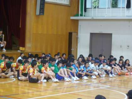 6時間目に、生徒会主催の夏季選手権大会激励会を体育館で行いました。美術部とコンピュータ部の皆さんが制作してくれた横断幕が掲げられた体育館に吹奏楽部の演奏の下、選手の皆さんが胸を張って入場してきました。その後、生徒会長の激励の言葉の後、各クラブのキャプテンから試合に向けての意気込みを発表しました。どのキャプテンからも3年生として最後の公式戦となる夏季選手権への強い意気込みを感じました。これまでの練習の成果をしっかり発揮して、悔いのない試合を展開してください。選手の皆さんが各試合会場で輝いてくれることを願っています。