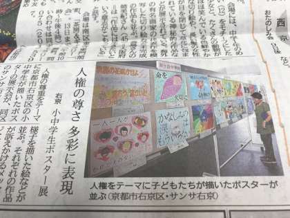 京都新聞の朝刊に昨日から右京区役所(サンサ右京)で開催されいる人権ポスター展の記事がのっていました。記事の写真には、本校生徒のポスターが紹介されていました。人権ポスター展は9月11日(月)までです。時間は、午前9時(土日は午前8時30分)から午後9時までです。ぜひご覧ください。